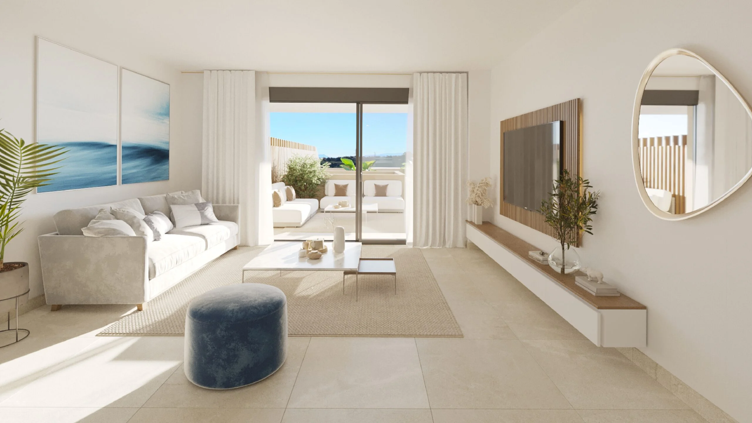 Adagio erhebt sich an der New Golden Mile in Cancelada – jenem Küstenabschnitt, der für seine perfekte Balance aus Ruhe und Erreichbarkeit bekannt ist. Die 80 Apartments und Penthouses mit zwei oder drei Schlafzimmern bieten offene Wohnbereiche, die durch bodentiefe Fenster nahtlos in die großzügigen Terrassen übergehen. Der Blick schweift über das Mittelmeer bis zum Horizont.