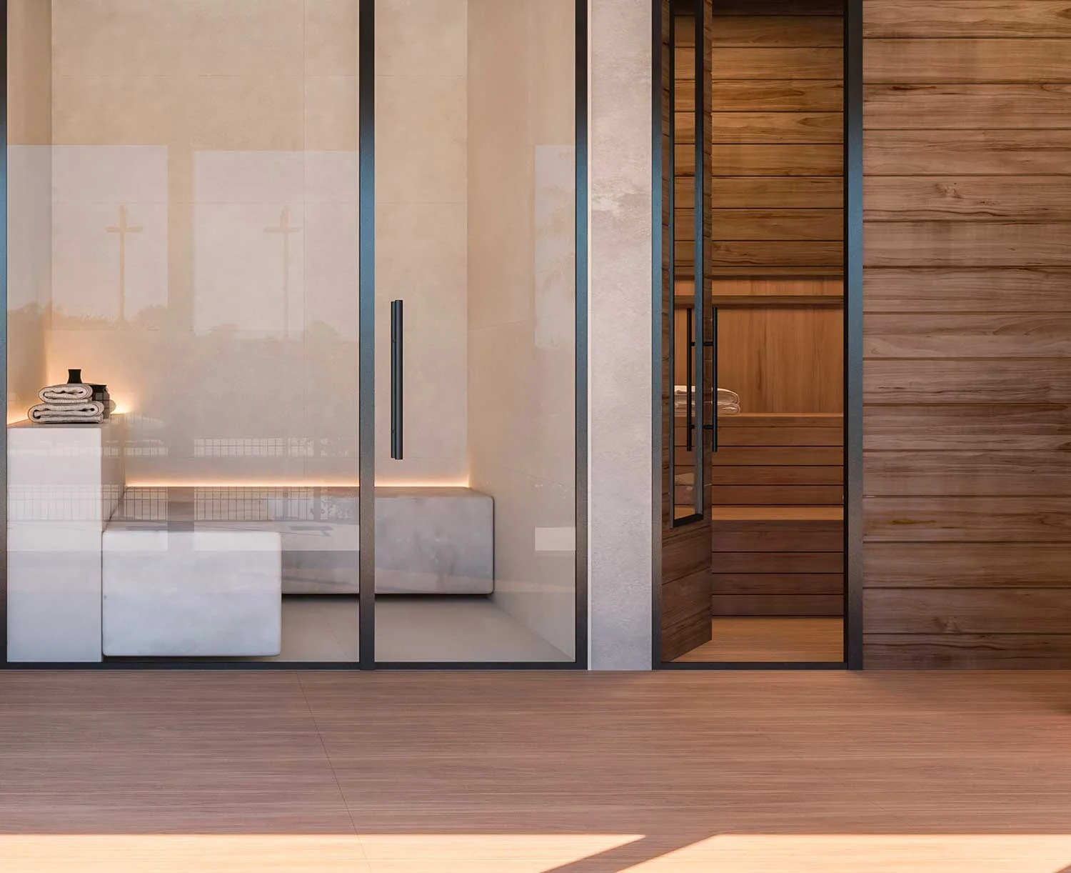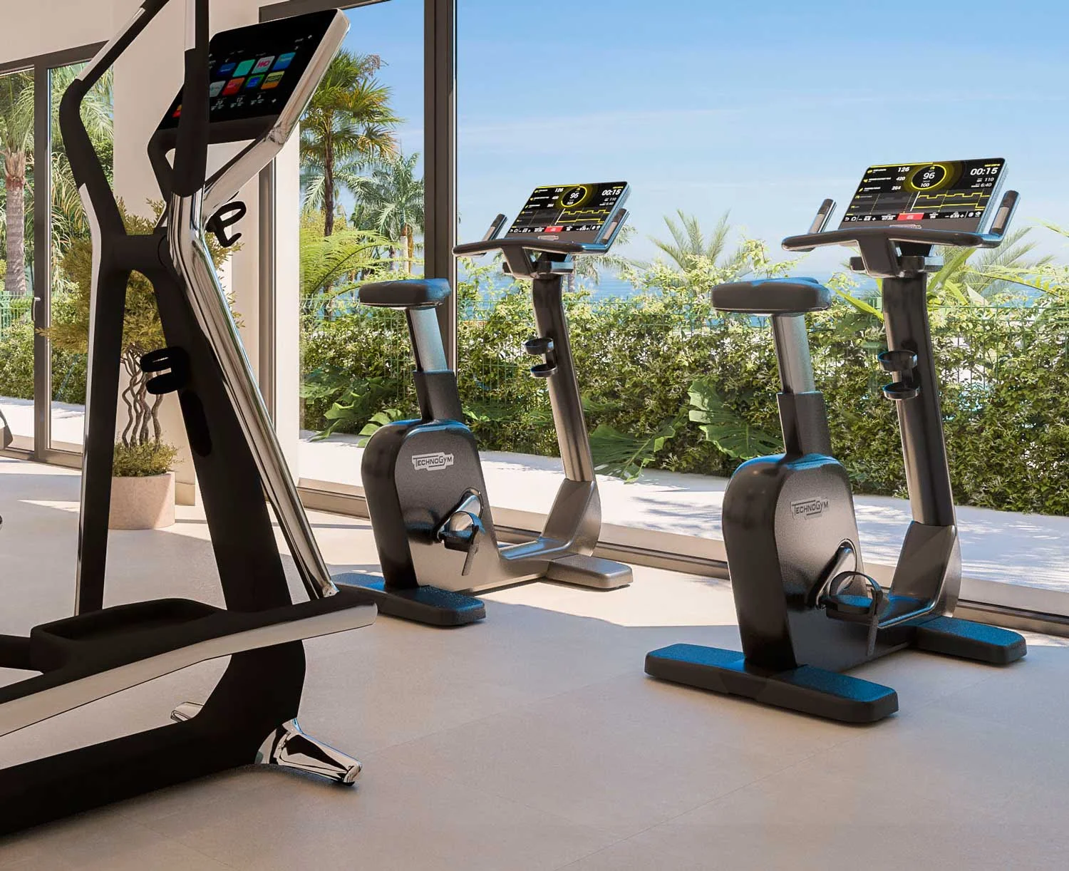 Die Annehmlichkeiten gehen weit über das Übliche hinaus: Yoga-Bereiche, ein luxuriöser Spa mit Hammam, Jacuzzi und Sauna, dazu Co-Working-Spaces, Multimedia- und Spielzonen. Üppige Grünflächen und einladende Pools vervollständigen das Bild einer Anlage, die Entspannung und Aktivität perfekt verbindet.