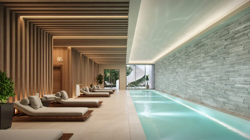 Exquisite Materialien und die Freiheit zur Personalisierung machen jede Wohnung einzigartig. Die Gemeinschaftsbereiche umfassen Co-Working-Space, E-Ladestationen, beheizten Innenpool und ein luxuriöses Gym-Spa-Kombi. Eine geschlossene Anlage garantiert Sicherheit.
