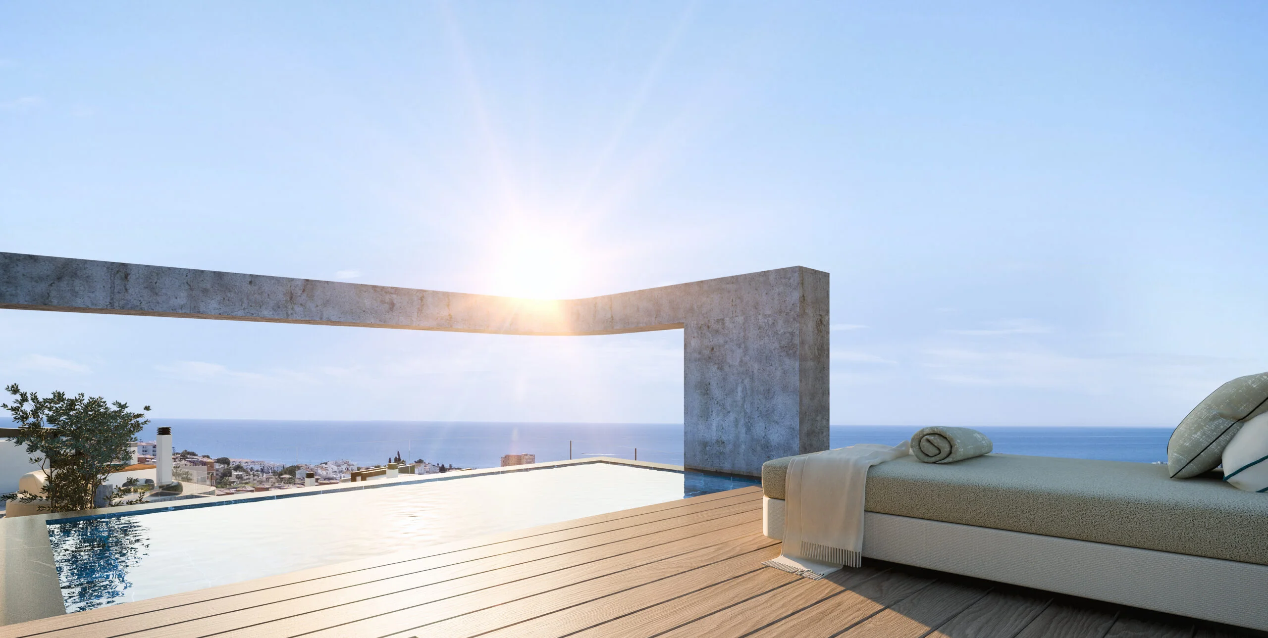 Zew thront auf den malerischen Hügeln von Elviria in Ost-Marbella – eine exklusive Anlage mit 88 stilvollen Duplex-Apartments, konzipiert für ruhiges Leben inmitten der Natur. Die geräumigen Wohnungen mit zwei oder drei Schlafzimmern lassen sich bei Bedarf um ein viertes Zimmer für Gäste oder Home-Office erweitern.