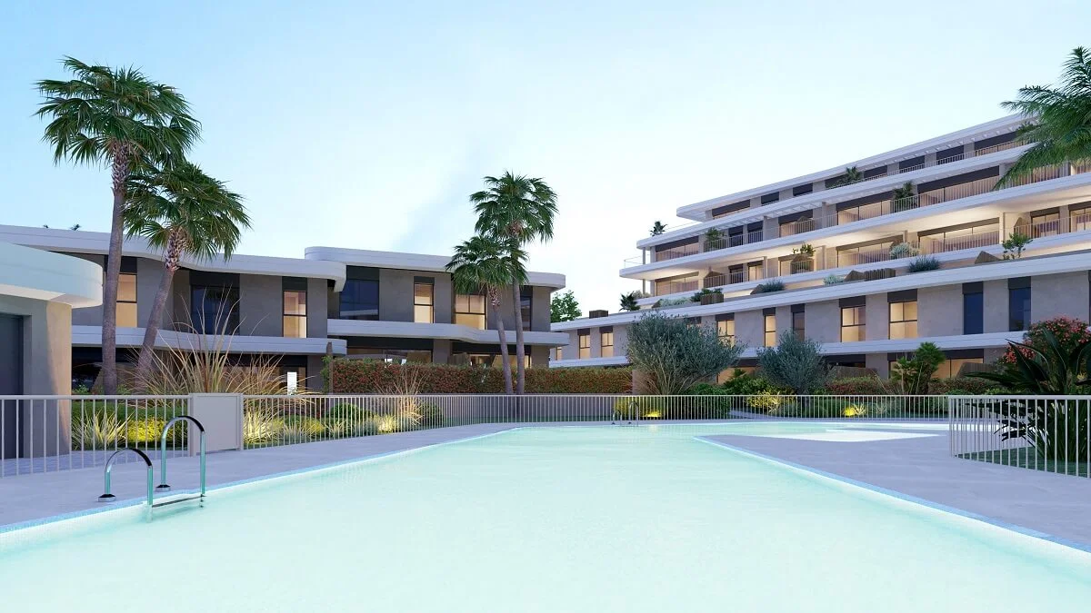 Modernes Design trifft auf durchdachten Komfort: Voll ausgestattete Küchen, hochwertige Materialien und eine Architektur, die das mediterrane Licht optimal nutzt. Die Gemeinschaftsbereiche umfassen einen Pool, Fitnessbereich und einen Zen-Garten – Rückzugsorte für Körper und Geist.