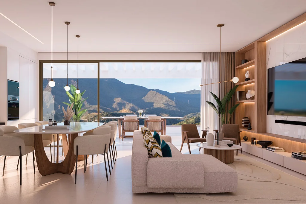 Maralto ist eines der ambitioniertesten Projekte in Las Mesas, Estepona – mit 164 exklusiven Residenzen, die Meer- und Bergblicke gleichermaßen einfangen. Die Wohnungen mit ein bis drei Schlafzimmern verfügen über ein innovatives Konzept: Doppelterrassen, die ganzjähriges Outdoor-Living ermöglichen.