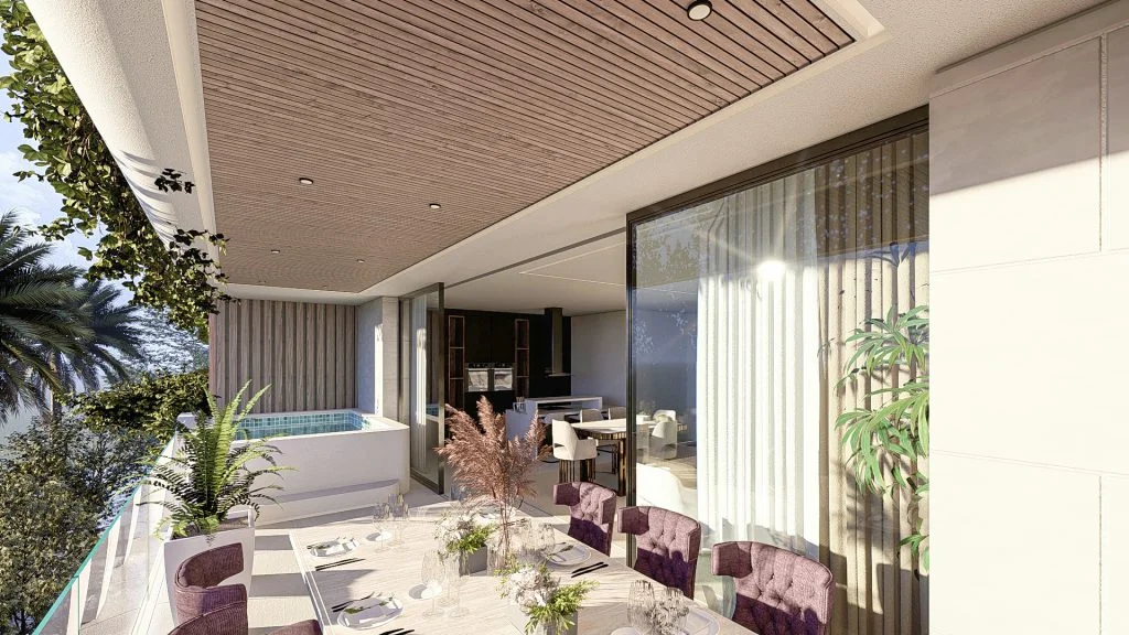 Die Architektur fügt sich harmonisch in die mediterrane Landschaft ein und betont natürliches Licht, offene Räume und Nachhaltigkeit. Bewohner genießen Dach- und Gartenpools, Fitnesscenter mit Sauna, Co-Working-Spaces, 24-Stunden-Sicherheit und Concierge.